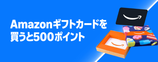 キャンペーン期間中、Amazonのキャンペーンサイトでエントリー後、Amazonギフトカード(Eメールタイプ、PDF印刷タイプ、配送タイプ)を期間中合計5,000円以上購入で500ポイント(期間限定)がプレゼントされるキャンペーンです。