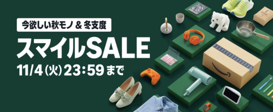 2025年10月27日(月)9:00〜11月4日(火)23:59の期間中、Amazon スマイルSALEとポイントアップキャンペーンが開催されます。
