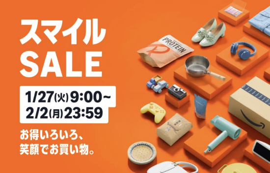2026年1月27日(火)9:00〜2月2日(月)23:59の期間中、Amazon スマイルSALEとポイントアップキャンペーンが開催されます。