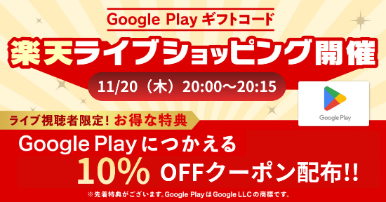 【2025年11月20日20:00〜20:15】楽天市場、Google Play ギフトコード認定店「ライブショッピング」開催